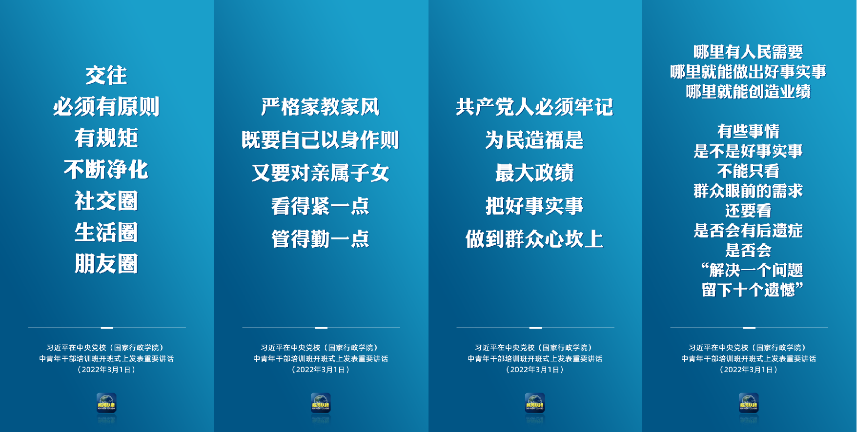 中共中央总书记、国家主席、中央军委主席习近平在开班式上发表重要讲话强调,年轻干部是党和国家事业发展的希望,必须筑牢理想信念根基,守住拒腐防变防线,树立和践行正确政绩观,练就过硬本领,发扬担当和斗争精神,贯彻党的群众路线,锤炼对党忠诚的政治品格,树立不负人民的家国情怀,追求高尚纯粹的思想境界,为党和人民事业拼搏奉献,在新时代新征程上留下无悔的奋斗足迹。