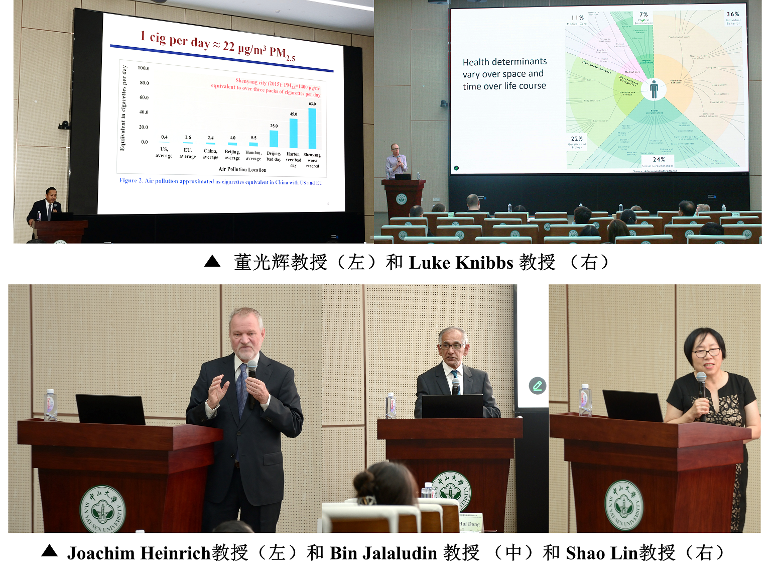 长达八年的合作历程,接着讲述了目前有关空气污染和糖尿病之间关联系统综述的研究进展和不足,同时呼吁各位研究者应对系统综述结果持批判态度,并强调了原创研究论文的重要性;澳大利亚新南威尔士大学Bin Jalaludin教授围绕空气污染健康影响评估讲述了空气污染现况及其带来的健康负担,并系统总结了过去10-15年间WHO、HEI、COMEAP、美国EPA等国际机构对不同大气污染物健康效应靶点的历史变化情况,强调了科学研究要为制定更有效的公共卫生政策提供帮助;美国纽约州立大学Shao Lin教授讲述了气候变化和极端天气对人类健康效应评估的新发现、挑战以及对未来相关领域研究的建议;澳大利亚悉尼大学Luke Knibbs教授就环境污染与健康之间面临的机遇和挑战进行了讲述,并提出了目前应重点关注的研究领域。