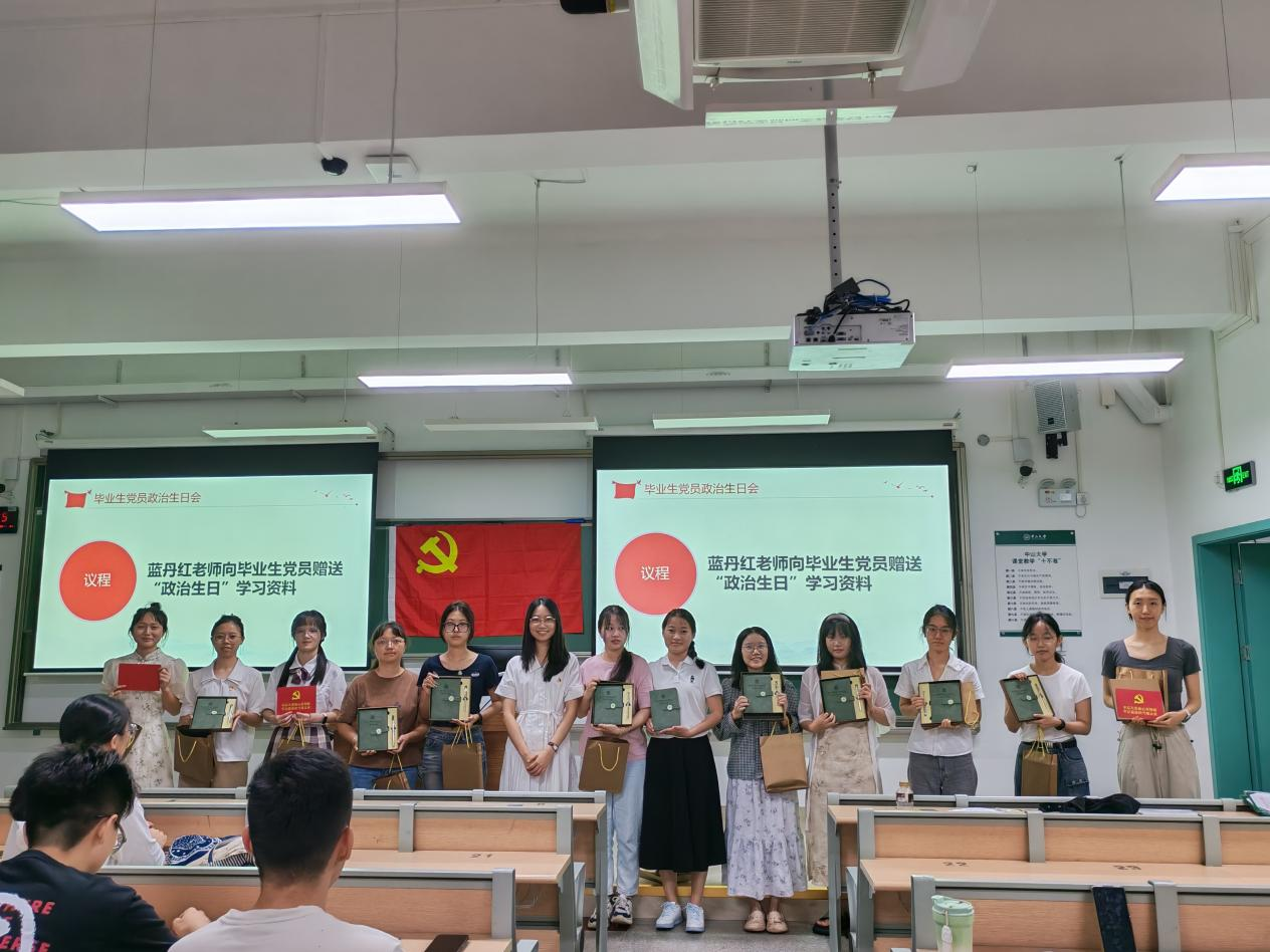 本科生第一和第二党支部组织开展毕业季传统活动,为2025届毕业生党员集体过政治生日,带领党员们回顾在支部学习成长的点滴,重温入党誓词,引导毕业生党员继续在未来的学习工作中永葆廉洁本色,发挥先锋模范作用。党支部书记蓝丹红老师、2020级毕业生党员参加了会议。会议由支部副书记卫怡廷主持。