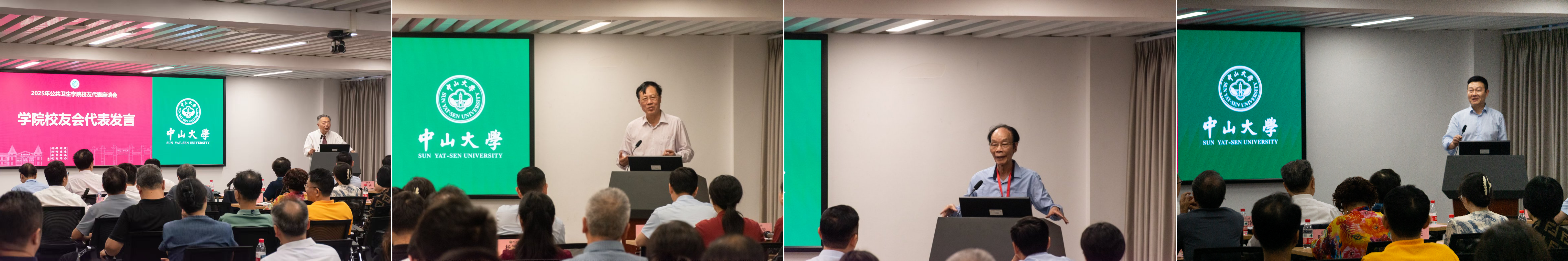 学院校友会代表原医学统计与流行病学系主任方积乾教授,原院长凌文华教授,原党委副书记张继芳副教授,原院长郝元涛教授,原副院长刘移民教授,原医学统计与流行病学系副主任骆福添教授,原卫生毒理学系杨杏芬教授,原党委副书记杨德胜老师激情满怀先后发言,他们深切怀念在学院学习、工作的美好时光,感恩学院培育,号召凝聚力量,为学院发展添砖加瓦,续写深情厚谊。