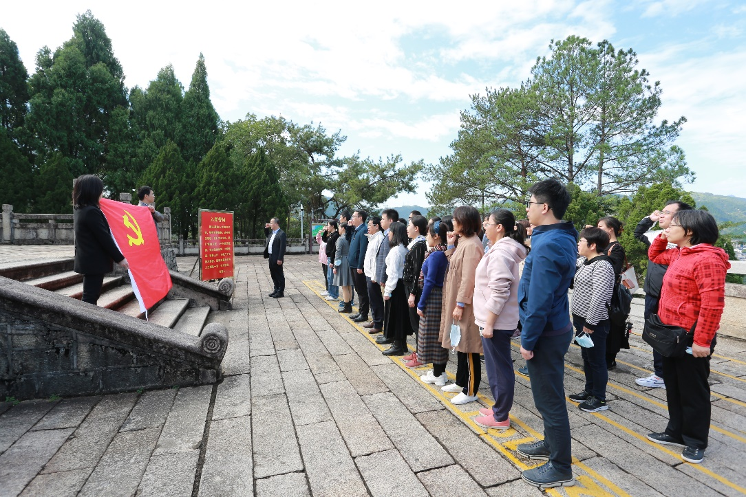 接着,培训班学员来到位于纪念园区左侧的三河坝战役烈士纪念碑前缅怀先烈。碑身用三百六十五块花岗石砌成,代表一年365天大埔人民对三河坝战役烈士的无尽的追思。碑正面镌刻着朱德同志亲笔题写的“八一起义军三河坝战役烈士纪念碑”碑名。在范瑞泉书记的带领下,全体学员在烈士纪念碑前重温了入党誓词:“......为共产主义奋斗终身,随时准备为党和人民牺牲一切,永不叛党。”