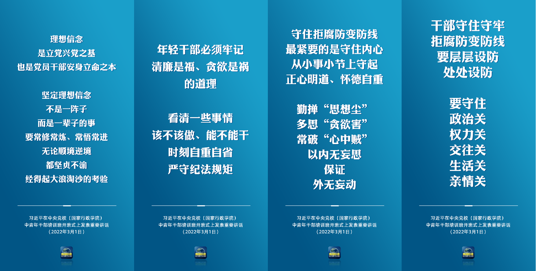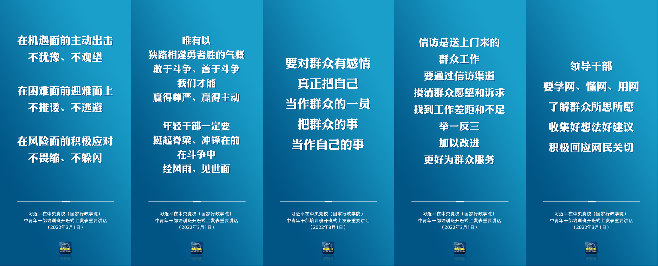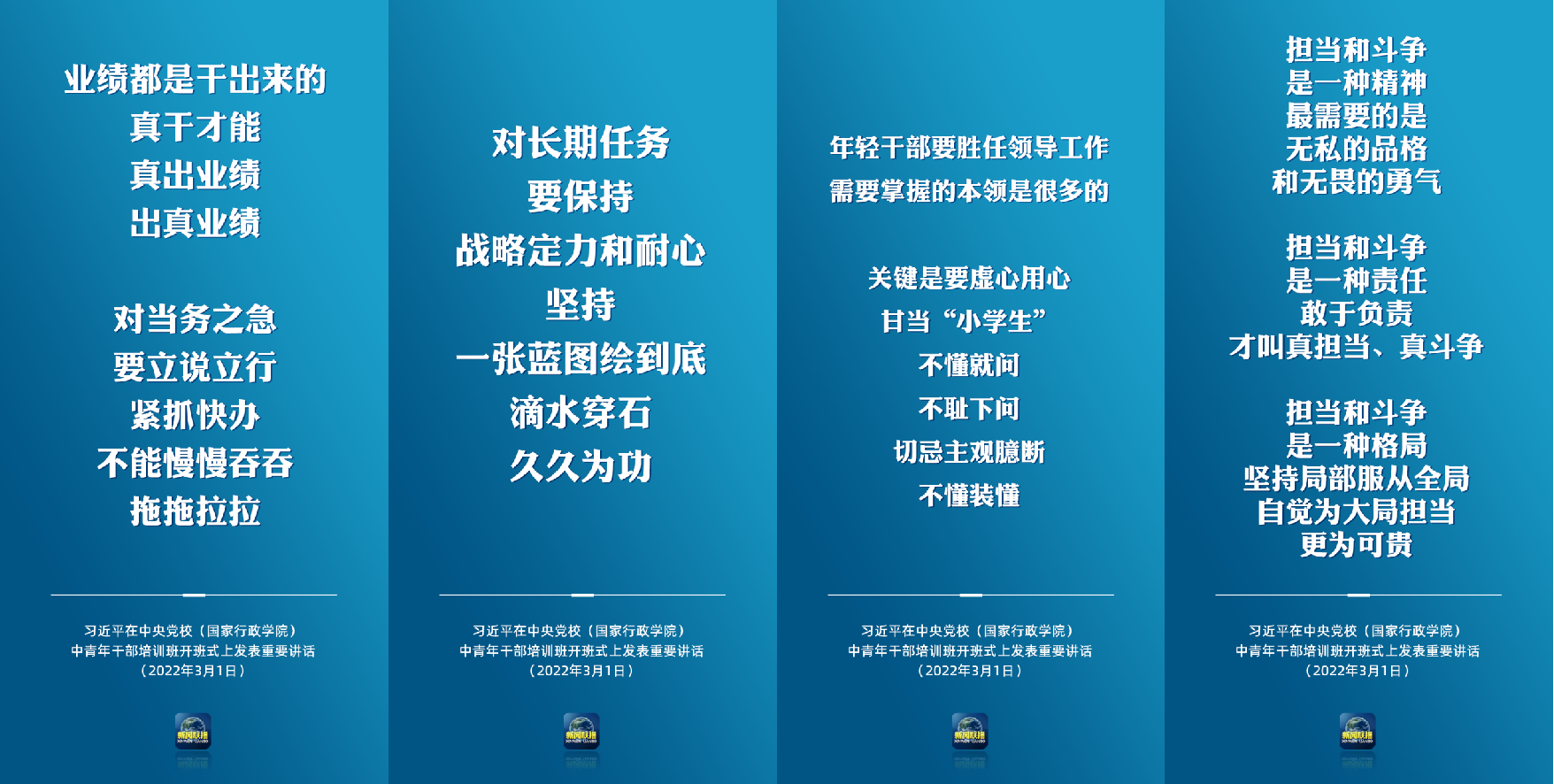 中共中央总书记、国家主席、中央军委主席习近平在开班式上发表重要讲话强调,年轻干部是党和国家事业发展的希望,必须筑牢理想信念根基,守住拒腐防变防线,树立和践行正确政绩观,练就过硬本领,发扬担当和斗争精神,贯彻党的群众路线,锤炼对党忠诚的政治品格,树立不负人民的家国情怀,追求高尚纯粹的思想境界,为党和人民事业拼搏奉献,在新时代新征程上留下无悔的奋斗足迹。