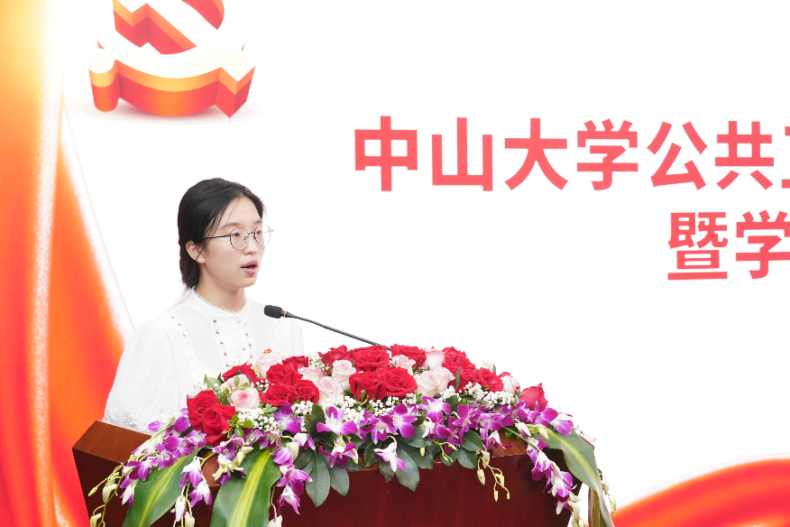 优秀共产党员代表杨嘉璐同学分享如何成为优秀的新时代的青年党员的心得体会,勉励大家做不负时代的青年党员。