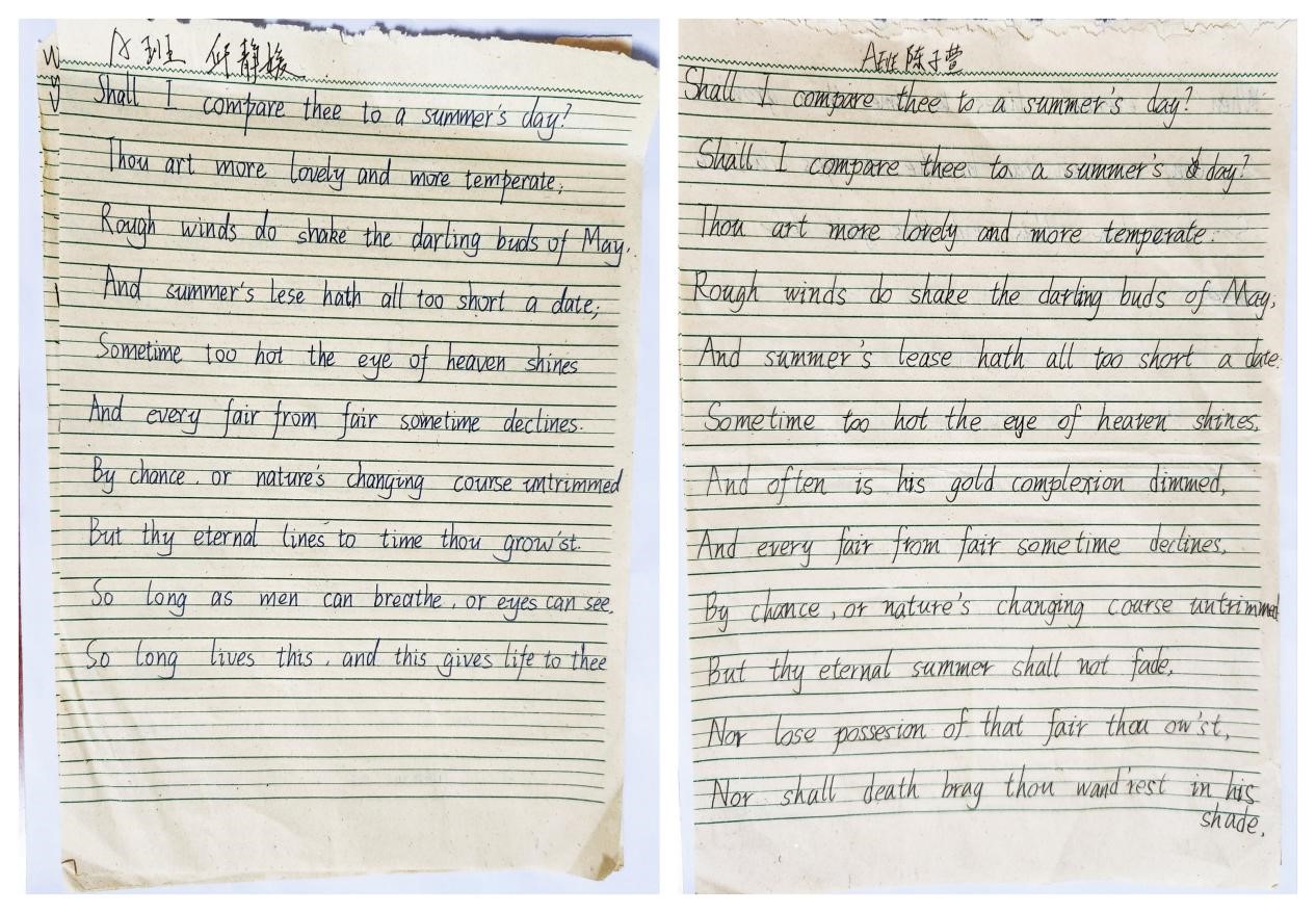 在英语教学方面,支教团小老师们围绕听、说、读、写、赏、演等方面开展丰富活动,其中重点开展英语书法比赛。英语与书法携手,文化与美学相遇。活动蕴含实用的英语知识和练习方法、引导学生养成良好的书写习惯并激发同学们练习书法的积极性,不仅帮助同学们认识到英语书法练习的重要性,也为以后的英语学习奠定良好的学习基础,还让同学们感受到了英语的魅力,了解多元文化,提升文化素养。