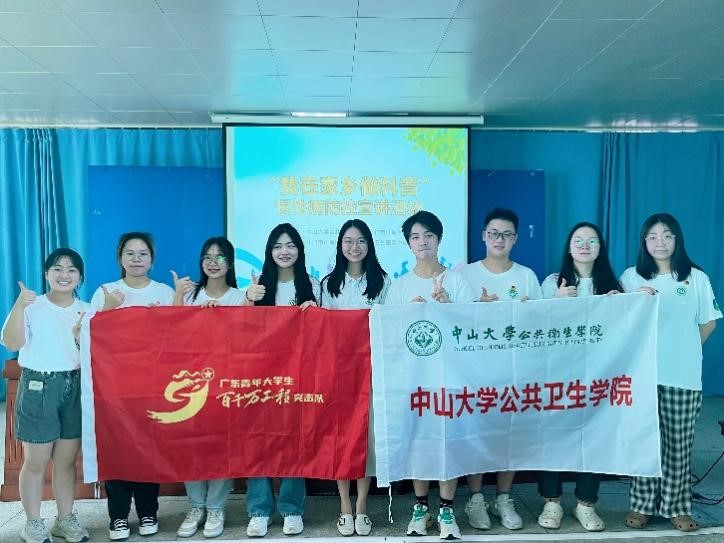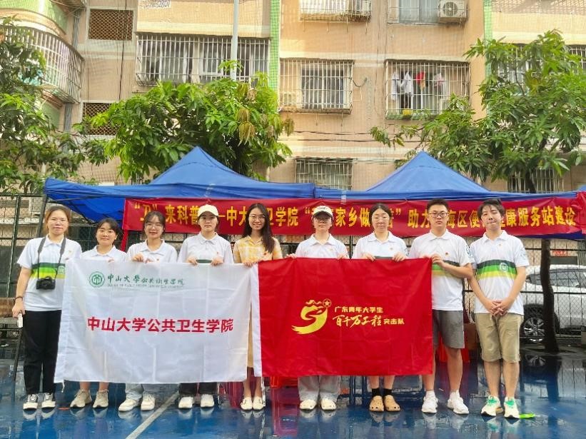 江门市江海区便民健康服务站建设项目实践团”,开展2023年广东大中专学生志愿者暑期文化科技卫生“三下乡”社会实践活动暨广东青年大学生“百千万工程”突击队行动。实践团由学院党委副书记王燕芳、团委副书记蓝丹红和卫生管理学系副教授张慧老师担任指导老师,由本科生党支部学生和卫生管理学系研究生组成队员。在活动中,公卫学子发挥公共卫生专业优势,深入基层开展健康科普活动,对基层医疗服务机构展开调研,了解社会现实,在实践中感悟专业魅力,通过科普活动提升公众健康素养和科学认知水平,助力健康中国战略实施。
