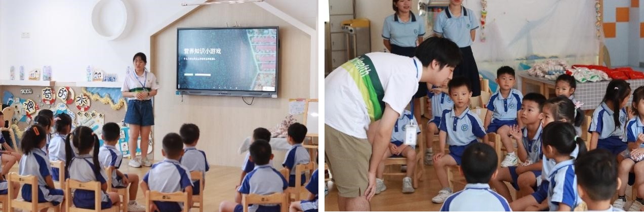 一行来到江海区实验幼儿园,开展健康饮食知识科普。通过“今天吃什么”、“猜猜我是谁”、“食物竞拍会”等游戏,以寓教于乐的方式向小朋友们介绍了简单的平衡膳食知识。科普活动结束后,队员与小朋友们的家长探讨孩子健康饮食相关问题,现场气氛活跃。