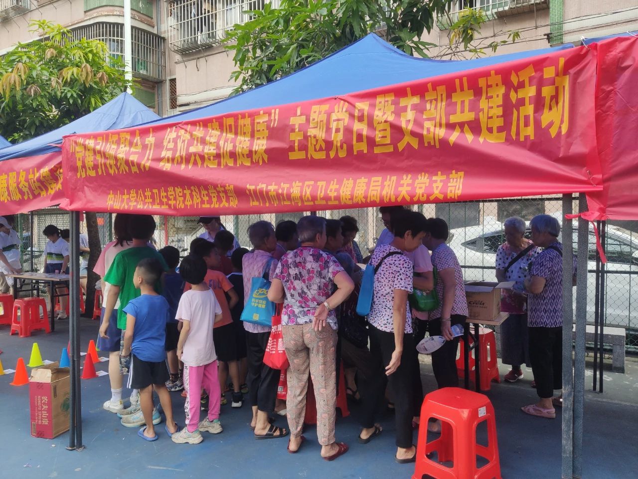 7月9日至11日,本科生党支部与江门市江海区卫生健康局机关党支部开展以“党建引领聚合力,结对共建促健康”为主题的党支部共建活动,分别在文苑社区举办了一场别开生面的健康科普游园会,在礼乐街道社区卫生服务中心开展慢性病防控宣讲。学院“百千万工程”突击队员和区卫生健康局党员干部通过互动游戏、义诊答疑、知识讲座等多种形式开展“我在家乡做科普”活动,普及约500余名群众,现场气氛浓厚,反响热烈,达到寓教于乐、学以致用的科普效果。双方通过党支部结对共建,组建“卫”来科普实践团走进江海,为江门市江海区基层党建工作提供指导;建立社会实践教育基地,为学生提供进基层、入社区实践的机会;开展便民健康站建设,惠及广大群众,让基本公共卫生服务做出特色、做出水平,推动江海区公共卫生事业实现新突破。