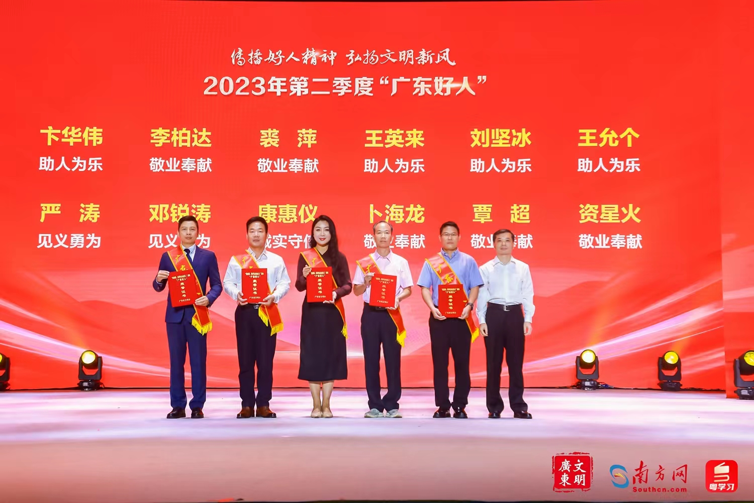 活动现场发布了2023年第二季度助人为乐、见义勇为、诚实守信、敬业奉献、孝老爱亲等各类“广东好人”名单,卞华伟榜上有名。