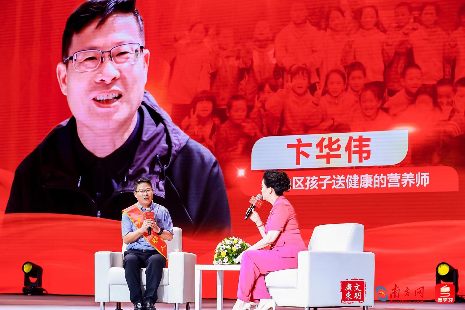 卞华伟现场接受交流访谈,分享“14年守护山区儿童营养餐”背后的初心和坚持。