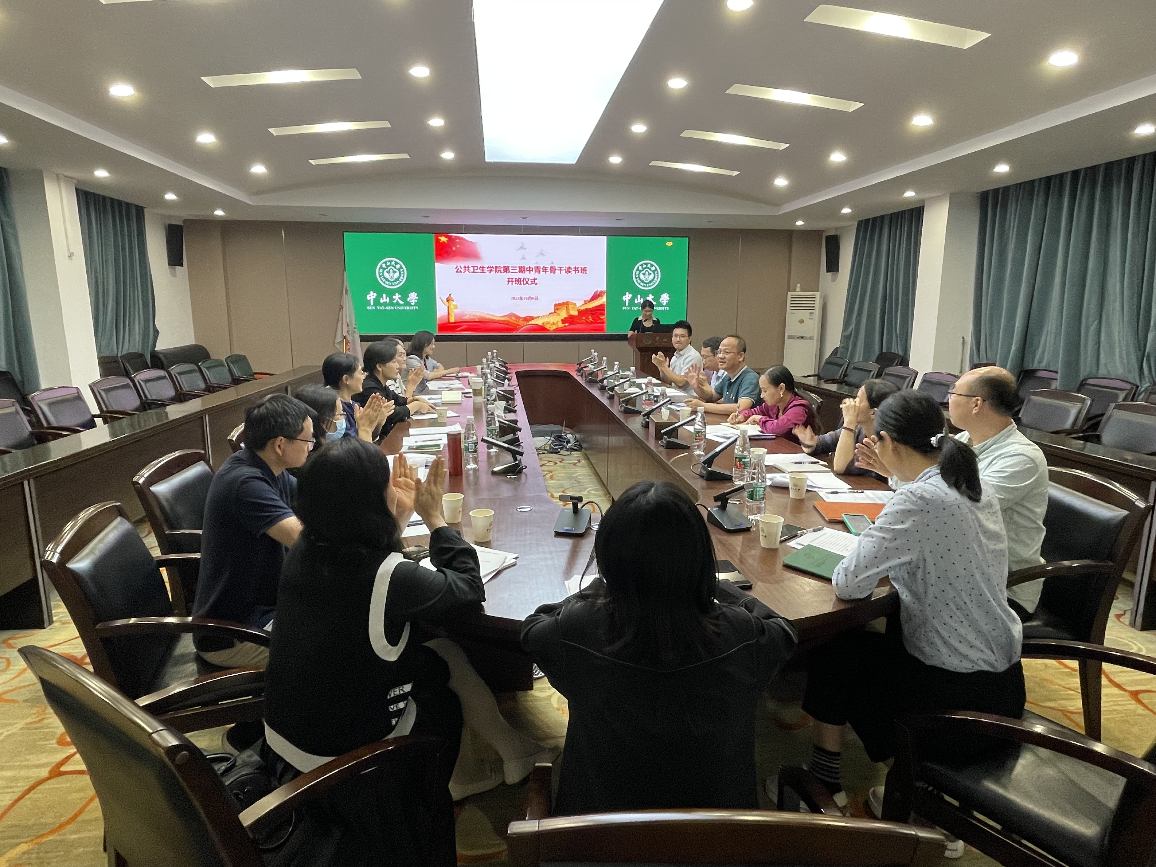 党委教师工作部黄伟娥副部长、院党委范瑞泉书记、院长夏敏教授、院党委王燕芳副书记以及中青年教师骨干读书班全体学员共20余人参加了开班仪式。开班仪式由读书班班主任庄淑玲老师主持。
