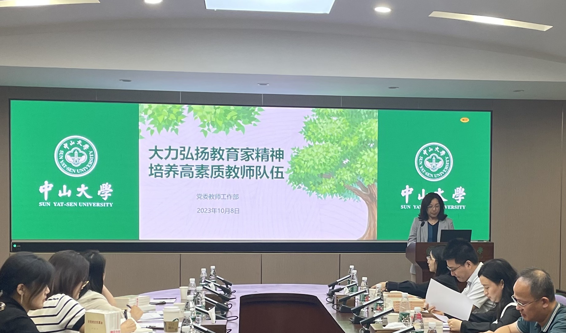 黄伟娥部长以《大力弘扬教育家精神,培养高素质教师队伍》为题做专题报告,深刻阐述了“坚守师风师德底线红线”和“坚持师风师德第一标准”两方面内容。黄部长引经据典,强调“防微杜渐”对师德师风教育的重要性。进一步重申了新时代高校教师职业行为十项准则,以真实的案例为在座的青年教师敲响了警钟。最后黄部长阐述了习近平总书记提出的“教育家精神”,强调只有把教育当作爱的事业,才能培育出优秀的人才。