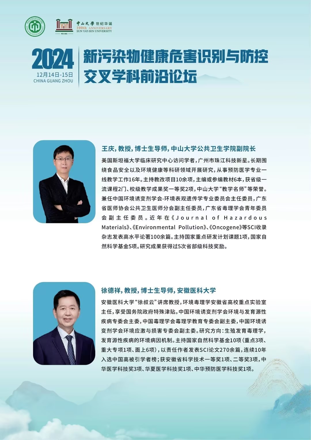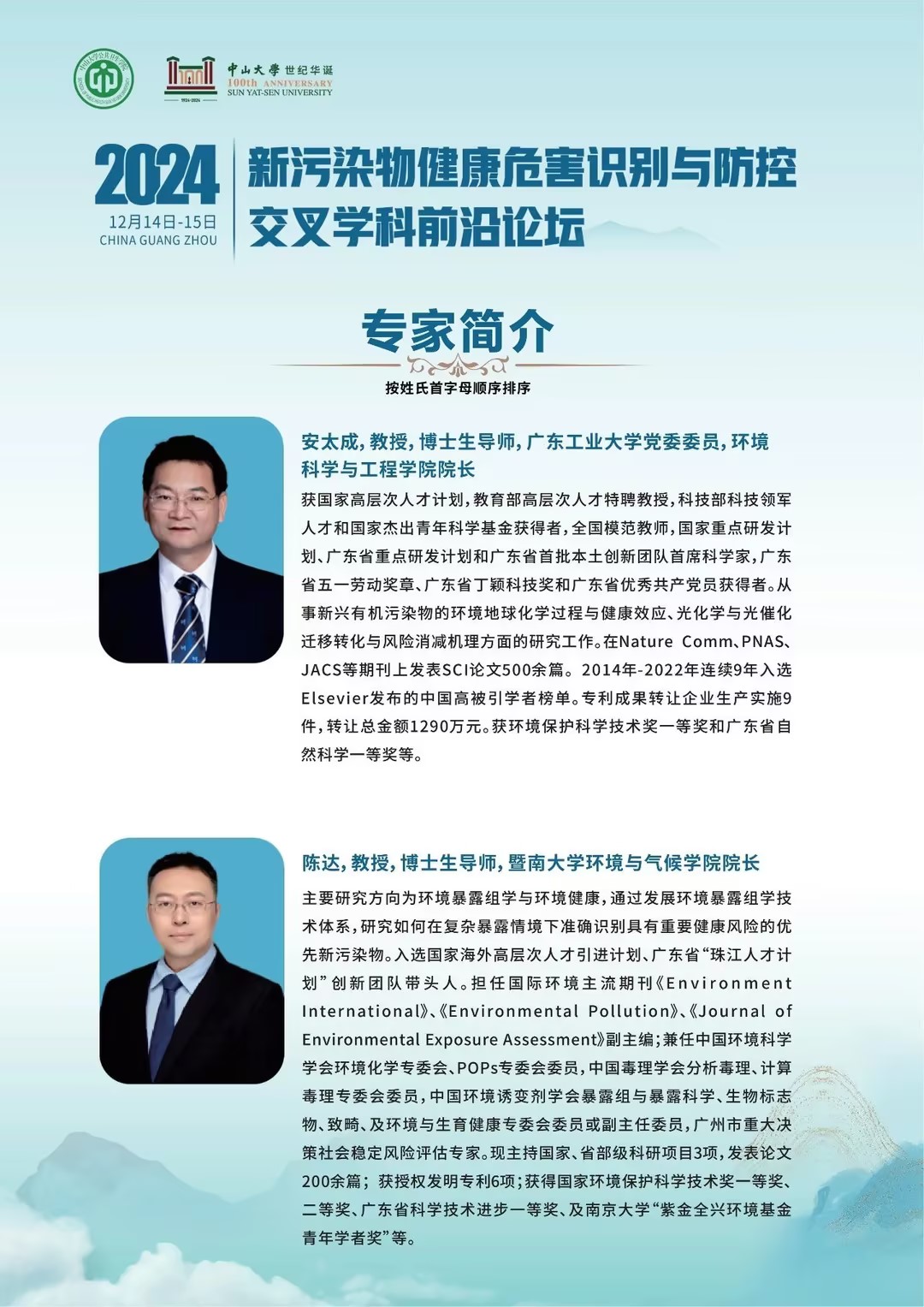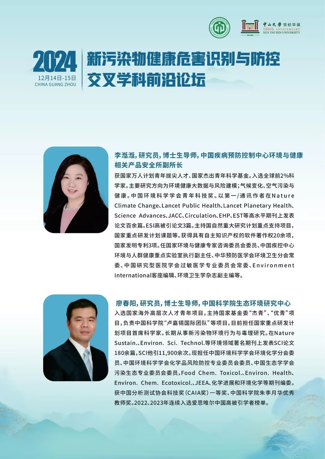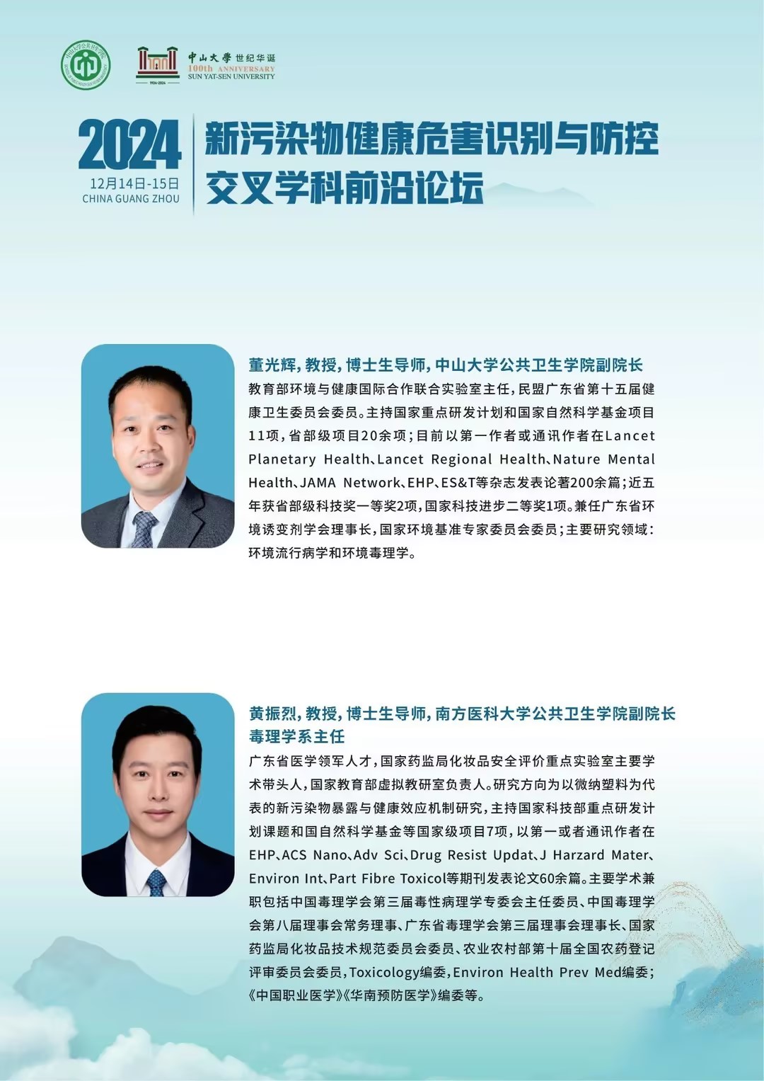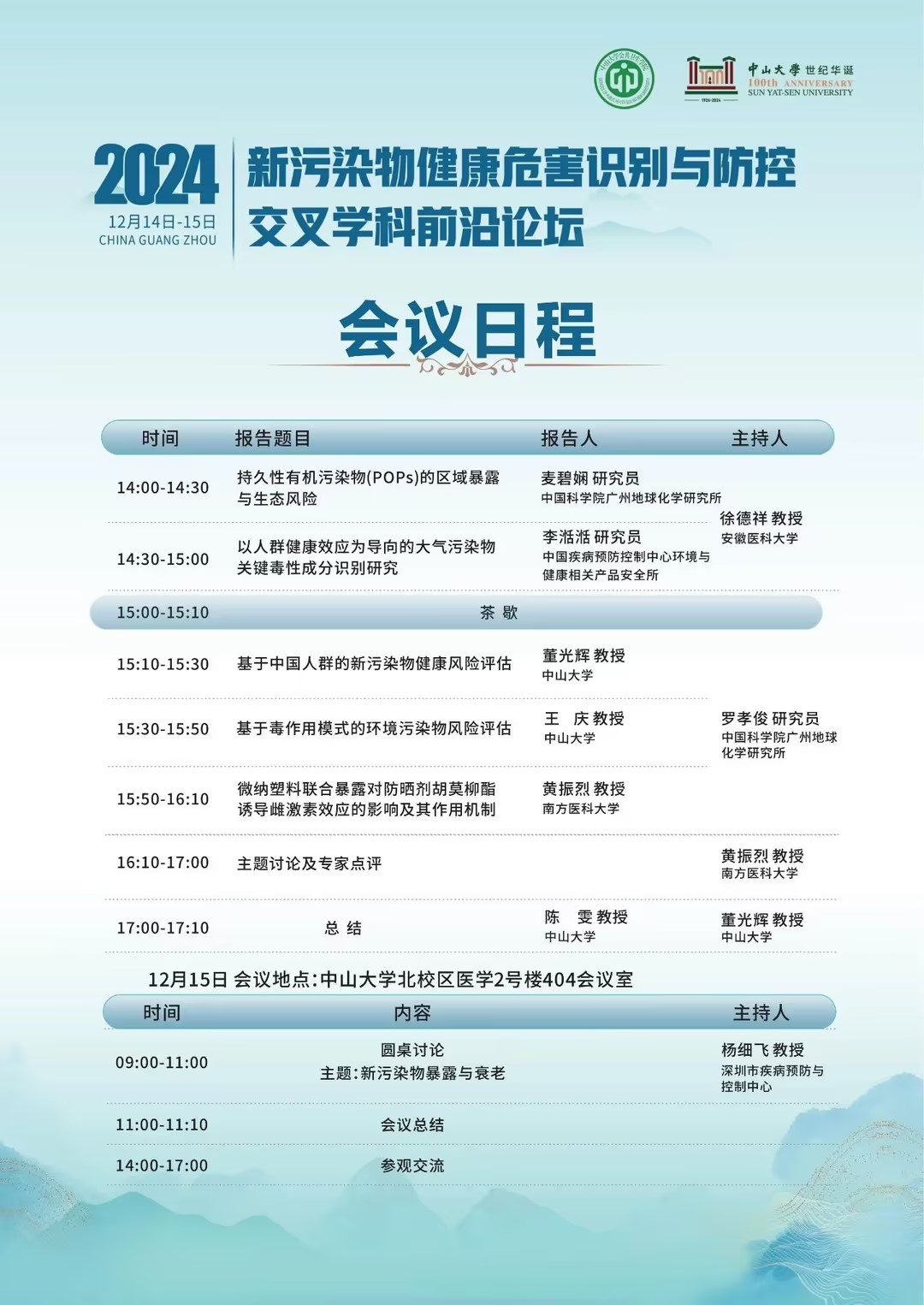 会议日程|新污染物健康危害识别与防控交叉学科前沿论坛(2024年12月14-15日,中国广州)