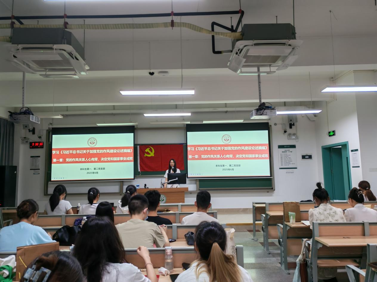 最后,支部书记讲授以学习《习近平总书记关于加强党的作风建设论述摘编》为主题的党课,并结合违反中央八项规定及其实施细则精神典型案例进行警示教育,提醒毕业生党员保持优良作风,严守纪律红线,扣好人生第一粒扣子。