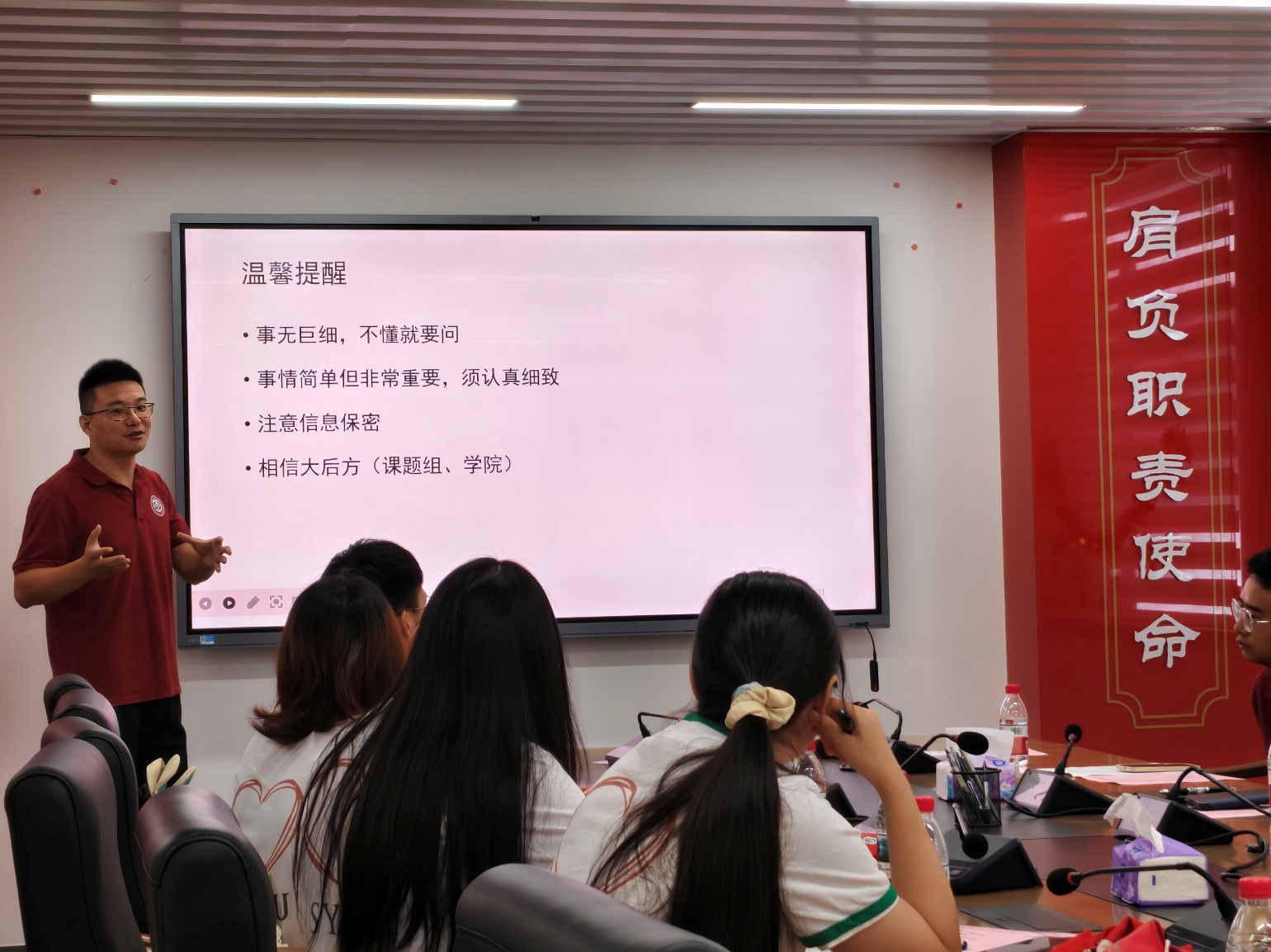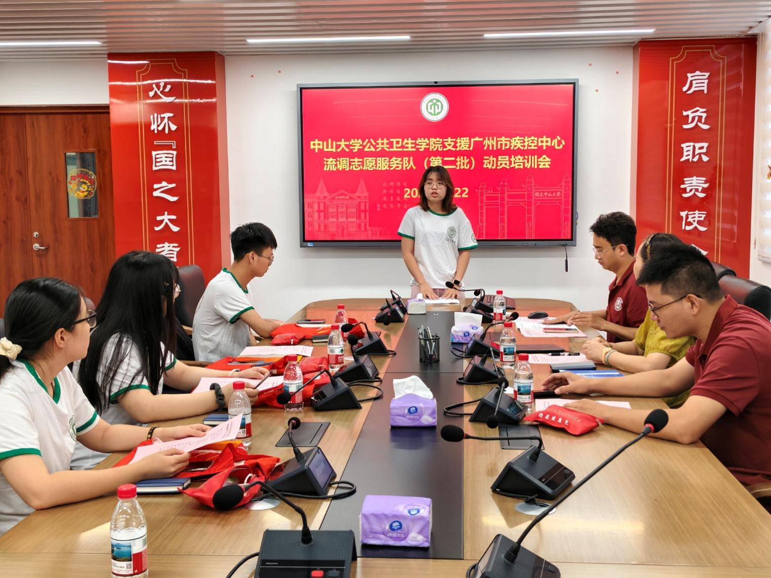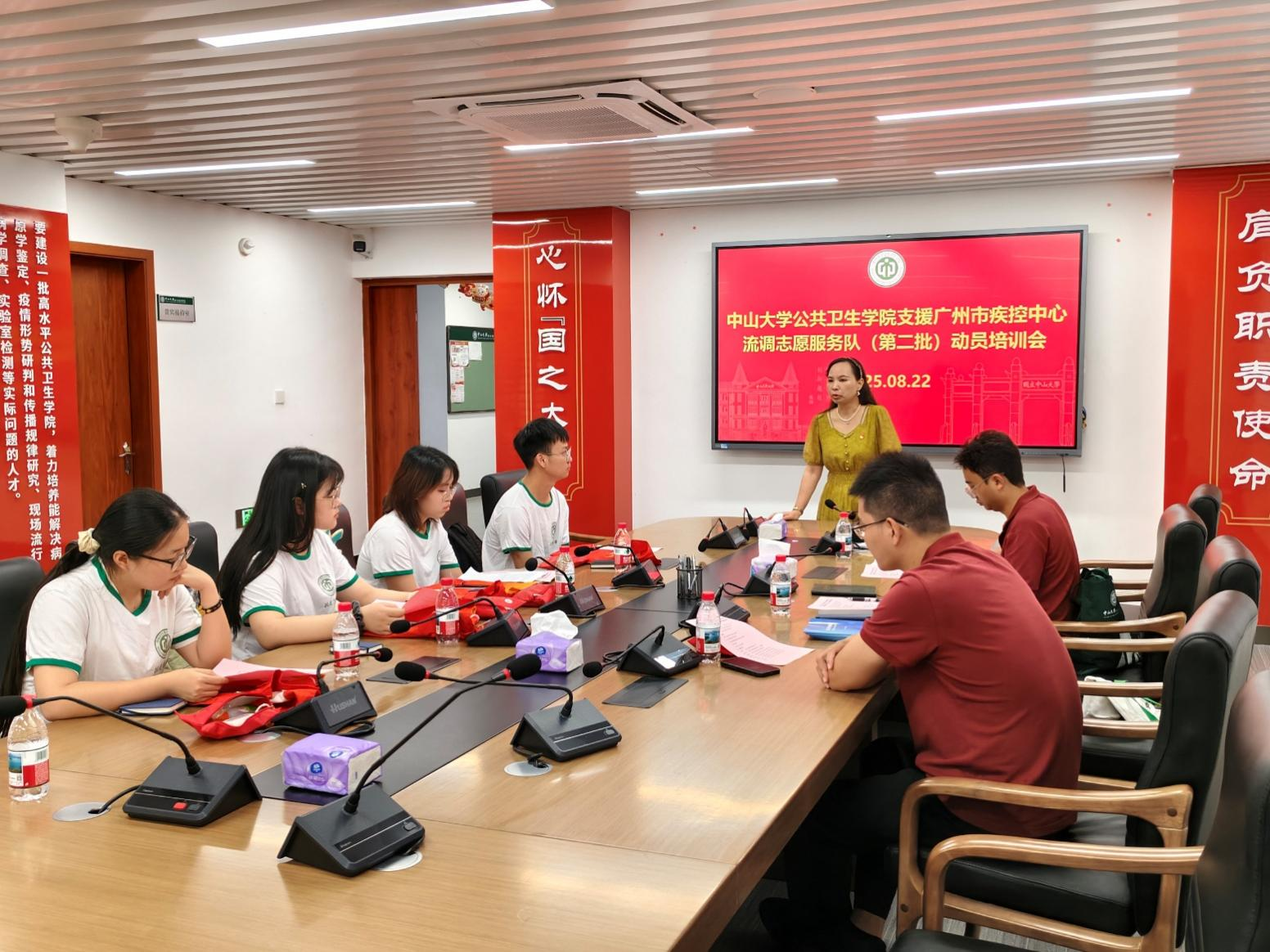 她对同学们有四点提醒:一是强化责任意识与担当精神,作为中大公卫的代表,要主动融入市疾控工作,不怕吃苦、勇于承担;二是注重安全防护,包括个人健康防护和流调信息保密,学院已为大家配备驱蚊包,也请同学们注意出行与数据安全;三是持续加强学习,积极掌握疾控常用软件和实操技能,并主动向一线人员请教,在实践中学习;最后,她表示学院始终是同学们的坚强后盾,全力支持志愿服务工作。希望第二批队员继承首批优良作风,充分发挥专业优势,在实战中提高流调能力,并切实做好个人防护,保障工作安全有序开展。