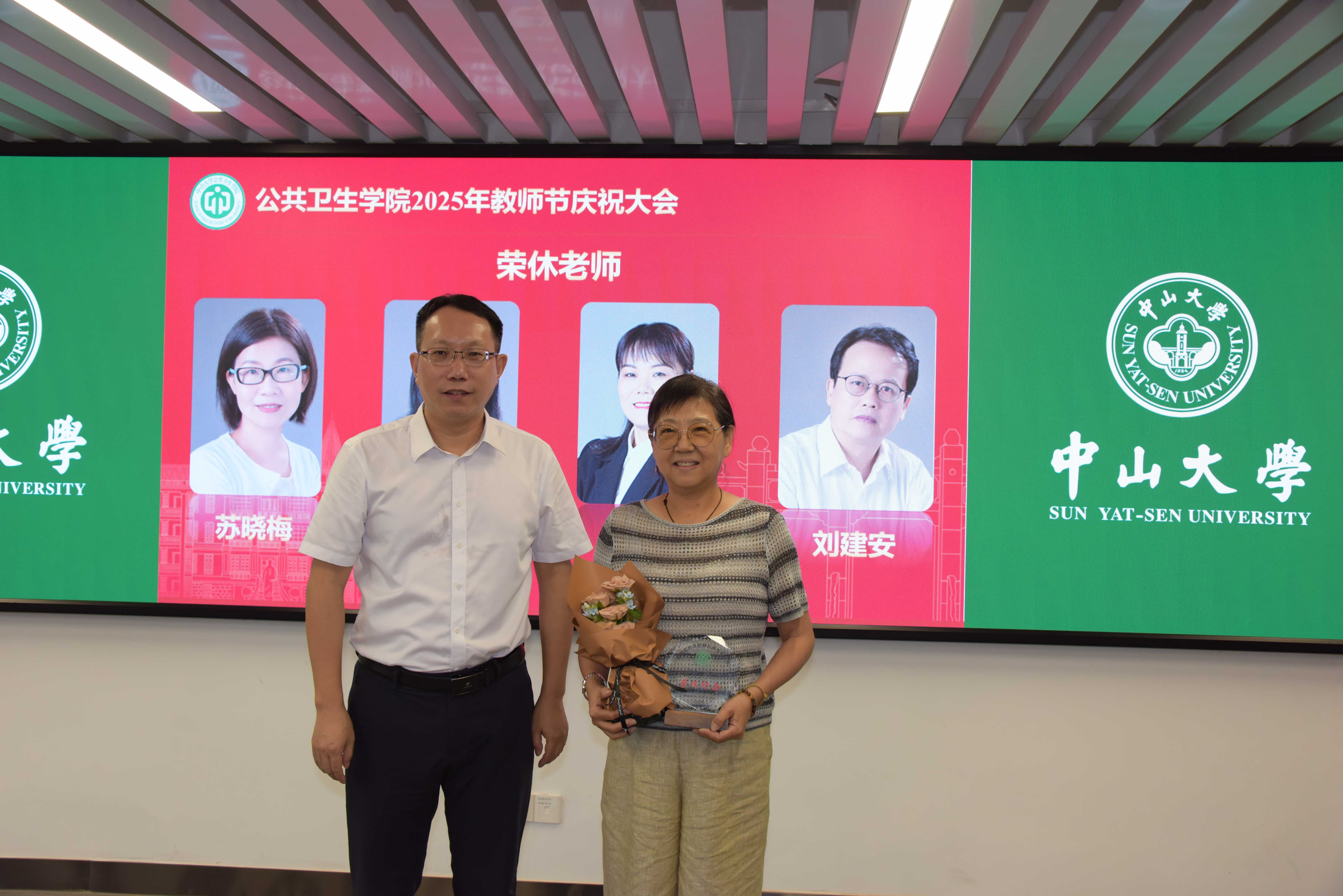学院的发展和成绩离不开每一代公卫人的努力和传承,夏敏为退休教师颁发纪念牌,感谢他们的辛勤付出和为学院做出的贡献。