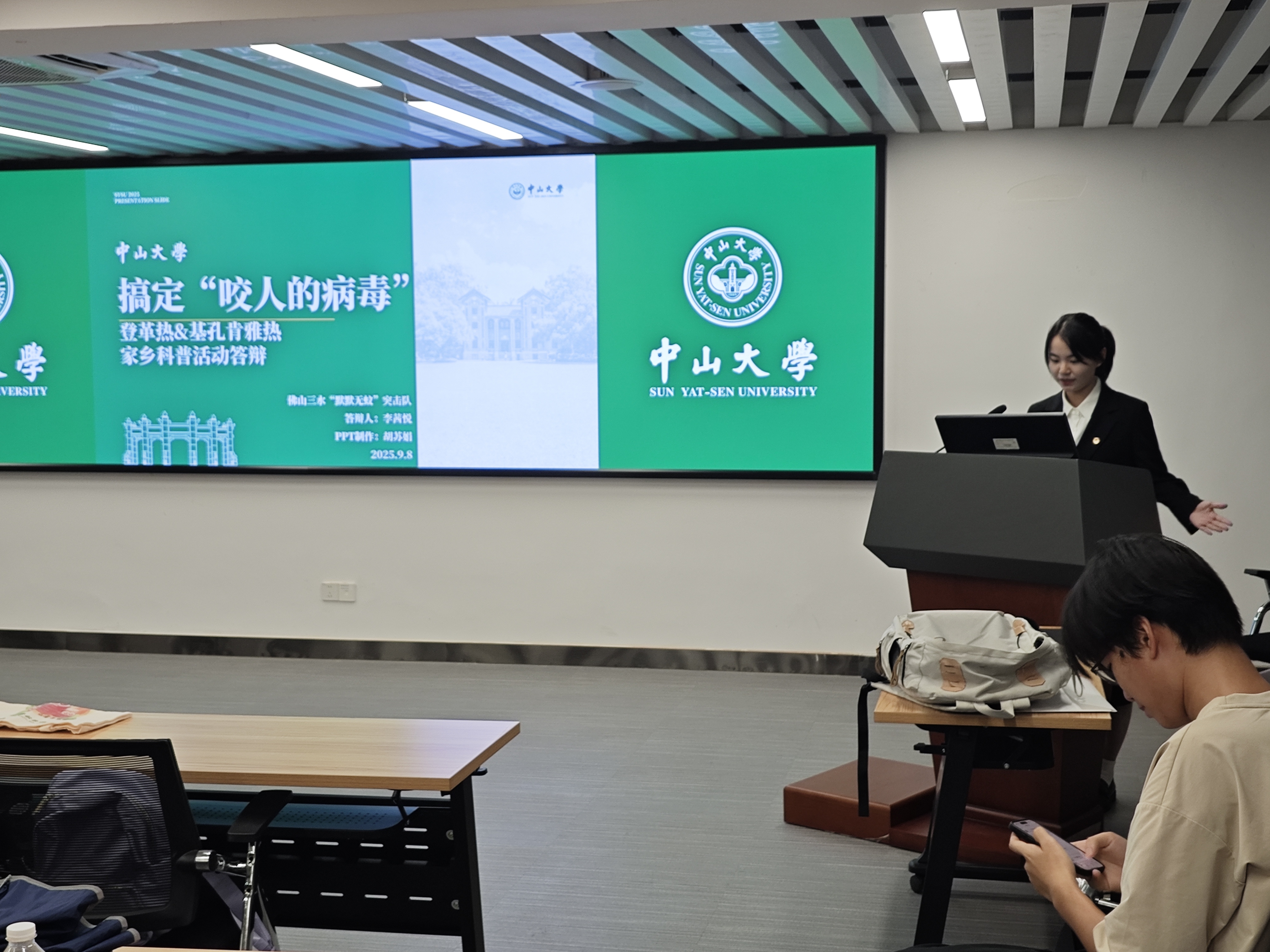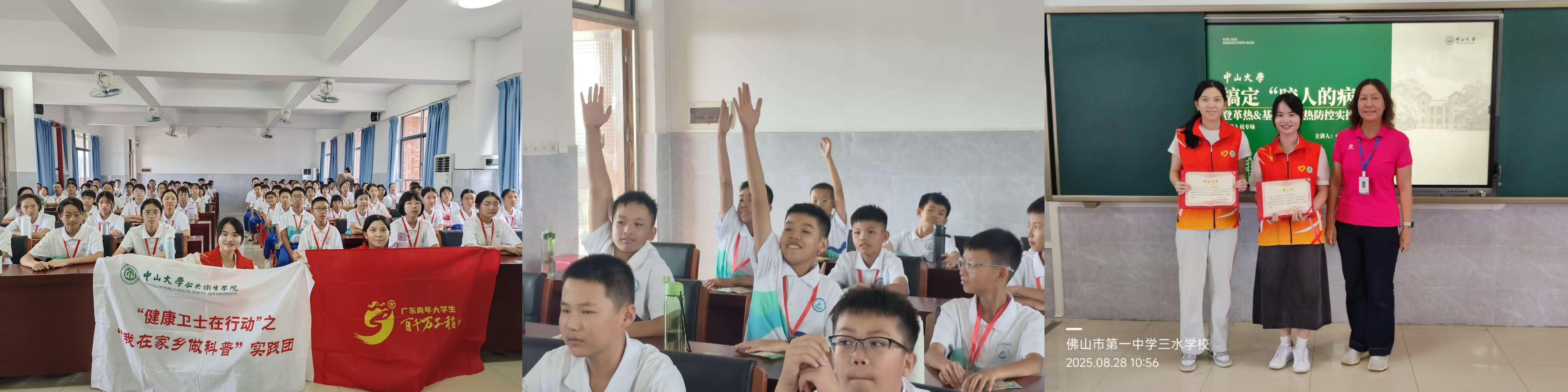 2025 年暑期,佛山市基孔肯雅热疫情严峻,“默默无蚊”实践团经调研发现校园聚集性疫情苗头显现:后勤人员积水清理不彻底、学生防蚊意识薄弱,校园公共卫生安全面临挑战。面对以上问题,实践团双线并进:对后勤人员开展重点培训,熟悉掌握积水排查及消杀操作各个模块;带领学生一起了解新闻案例、玩游戏(如“蚊子产房搜查”)、背顺口溜,掌握防蚊知识。闭环模式含后勤问题研讨、学生家庭实践任务,推动校园实现“日排查、周消杀”,知识纳入“开学第一课”。