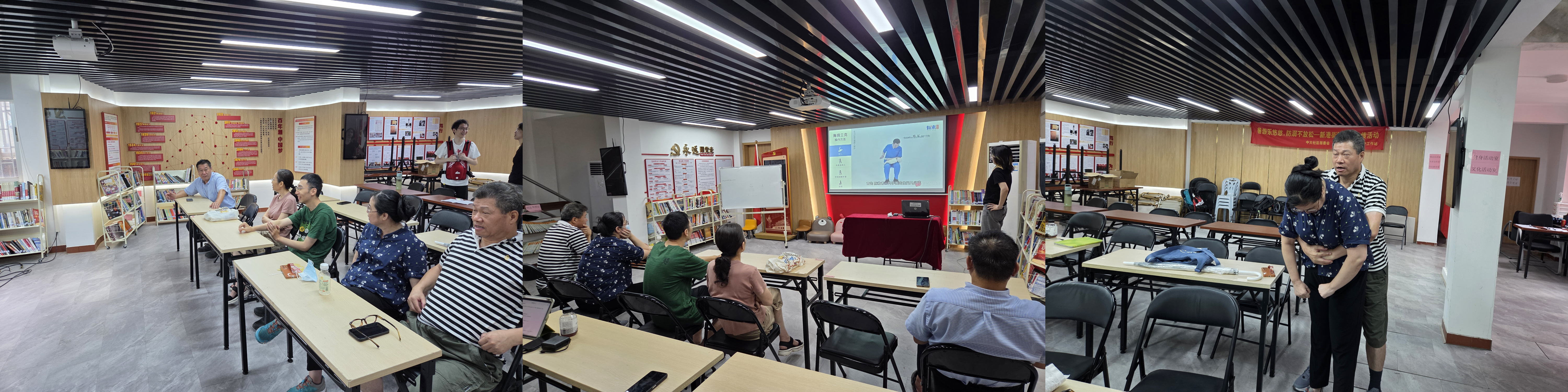 “救”在你身边实践队在中大社区开展“讲座+游园会”三维培训:通过海姆立克法情景模拟、急救知识闯关游戏实现互动教学,覆盖心肺复苏等五大急救场景。创新建立“现场演练+线上推文”长效传播机制,以四期科普文章延续学习热度。活动直接提升居民应急救护能力,强化“科学呼救”等核心技能,学生党员通过组织协调深化“公卫为民”的专业实践,形成社区健康素养提升闭环。