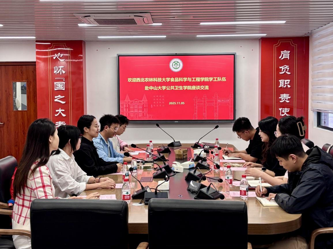 2025年11月5日15:00,DB彩票 与西北农林科技大学食品科学与工程学院研究生会交流会在DB彩票 北校园DB彩票 楼党员活动室顺利举行。本次交流会由DB彩票 团委副书记李永强主持,西北农林科技大学食品科学与工程学院李涓睿老师、研究生会主席团成员乔锋(兼执行主席)、甄玉荷、姬润华,以及DB彩票 团委书记彭雪婷老师、研究生会主席团成员李礼杰(兼执行主席)、毛维娅、聂祎凡及各部门召集人共同参会,围绕研究生会组织建设、特色活动创新与学生服务优化等核心议题开展了深入分享与热烈讨论,为校际研究生会工作交流搭建起高效沟通的平台。