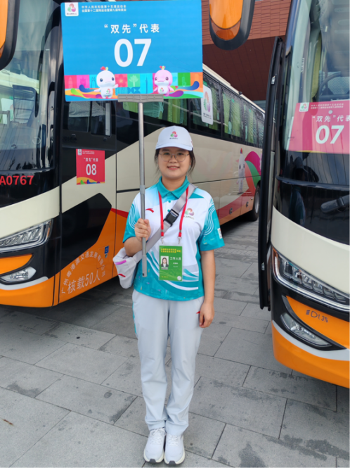 2022级本科生梁晓琳:能够成为十五运会“双先”代表观摩活动的随车志愿者,我倍感荣幸。在前期准备和现场开展过程中,我体会到了活动组织的严谨性和专业性,也感受到了“被需要”、“被感谢”的喜悦和满足,坚定了继续在公众服务中奉献自我的决心。