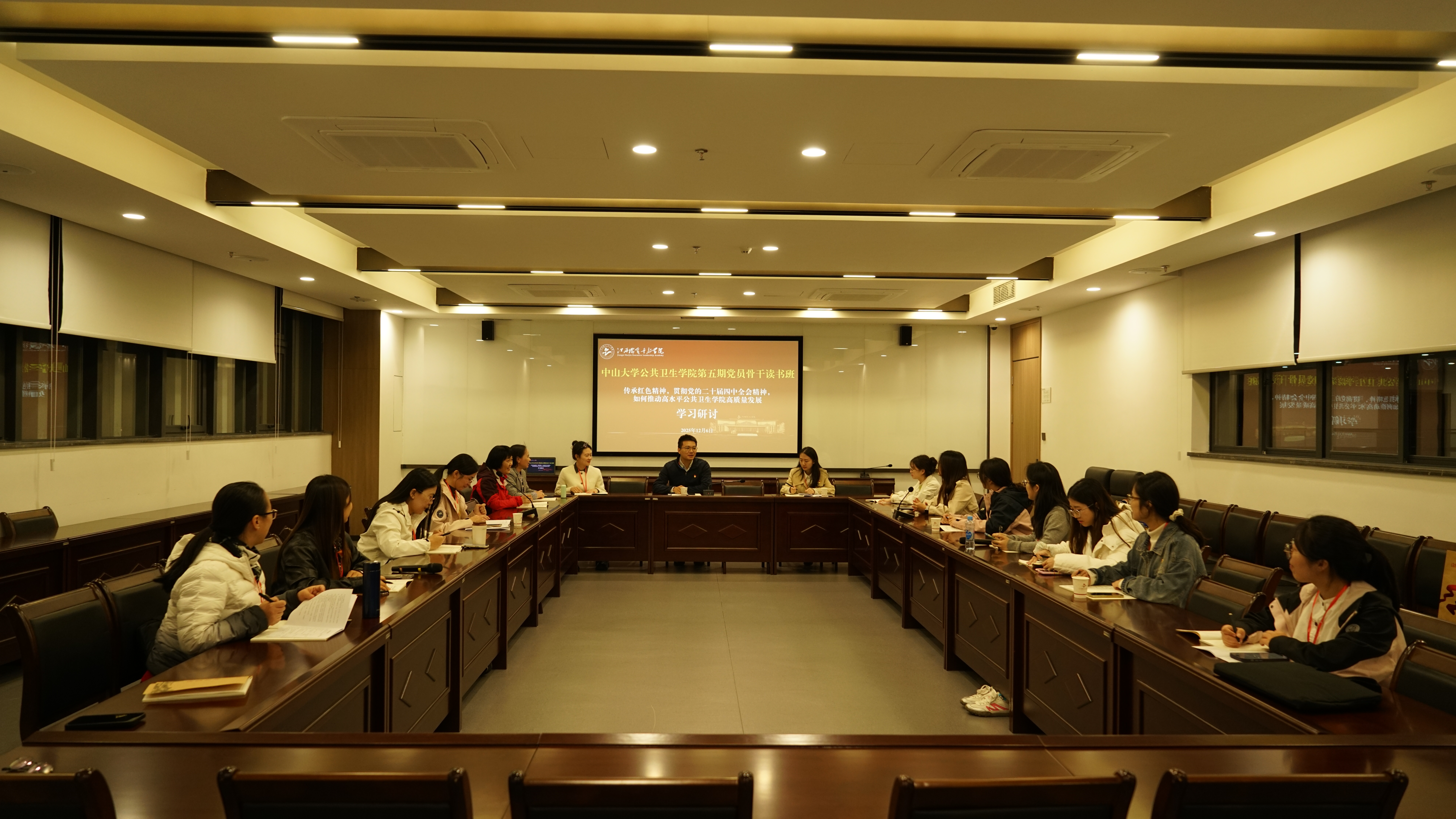 12月6日晚上,学员们围绕两天的学习感悟真诚交流、畅所欲言。读书班班长杜志成提议,各党支部应打破壁垒、共享资源,凝聚合力助推学院发展。王燕芳副书记在总结时强调,要将苏区精神转化为工作动力,以党建引领公共卫生事业实现高质量发展。