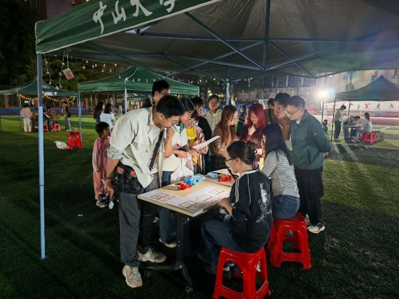 在北校区操场举办“冬日赫兹”草地音乐节,将心理健康教育融入音乐与互动体验之中,为师生们营造了一场轻松、温暖、富有参与感的心灵放松体验。活动以集章游园的形式展开,自由麦克风、歌词接龙、Emoji 猜歌名、混音识曲等环节轮番进行,同学们在歌声与欢笑中主动表达自我、释放情绪,在互动中建立联结与共鸣。草地一隅,同学们书写对学院五十周年的祝福,将个人情感与集体记忆悄然交织。整场活动以音乐为媒、以陪伴为核,让心理关怀在自然、开放的场景中“被感知、被参与、被记住”,在冬日夜色中为同学们注入持续前行的情绪能量。
